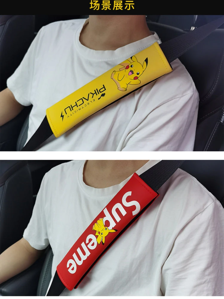 Diese Sitzgurt bzw. Sitzgurtabdeckungen sind was für echte Pokémon Fans und verzücken sicher auch die Kinder hinten auf den Rücksitzen. Die Abdeckungen haben nämlich auf der Vorderseite das beliebte Pokémon Pikachu bedruckt. Die Abdeckung gibt es in vier verschiedenen Varianten. In gelb mit einem hüpfenden Pikachu und in rot mit dem mittig sitzenden Pikachu und dem beliebten Supreme Emblem im Hintergrund. Die beiden anderen Gürtelschoner sind in schwarz mit Pikachu Aufdruck.
