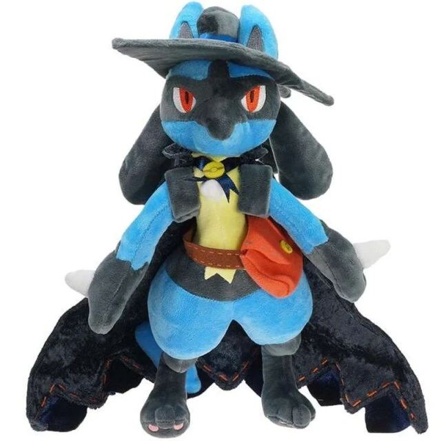 Lucario Plüsch Pokemon in der Halloween Edition. Das ca. 30cm große Lucario Pokemon Kuscheltier hat sich passend zu Halloween in ein Kostüm geworfen.