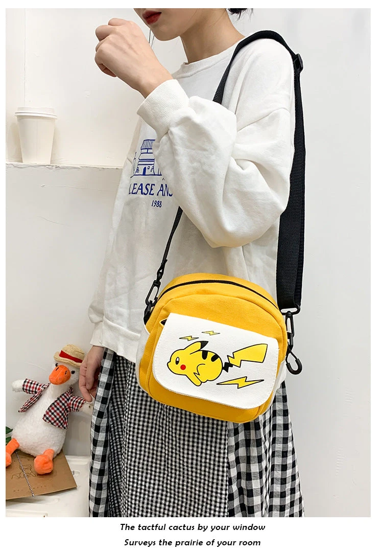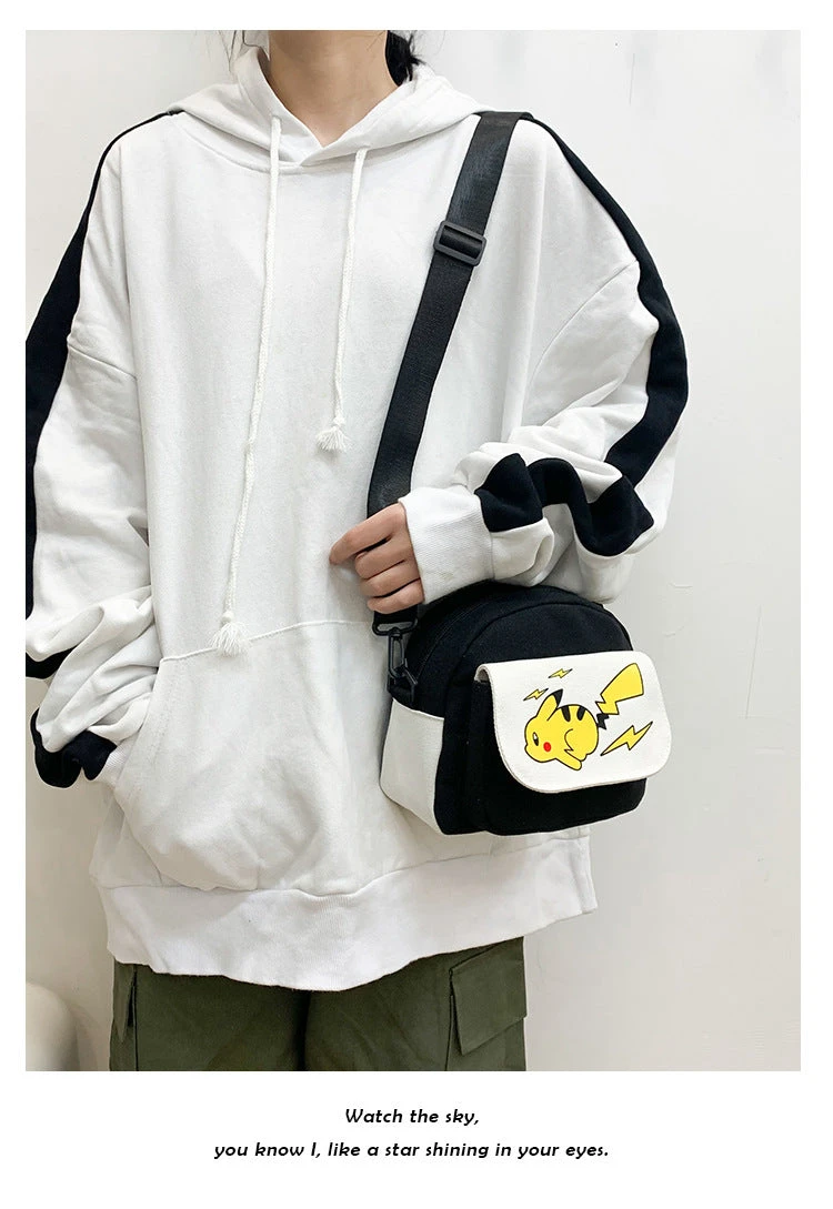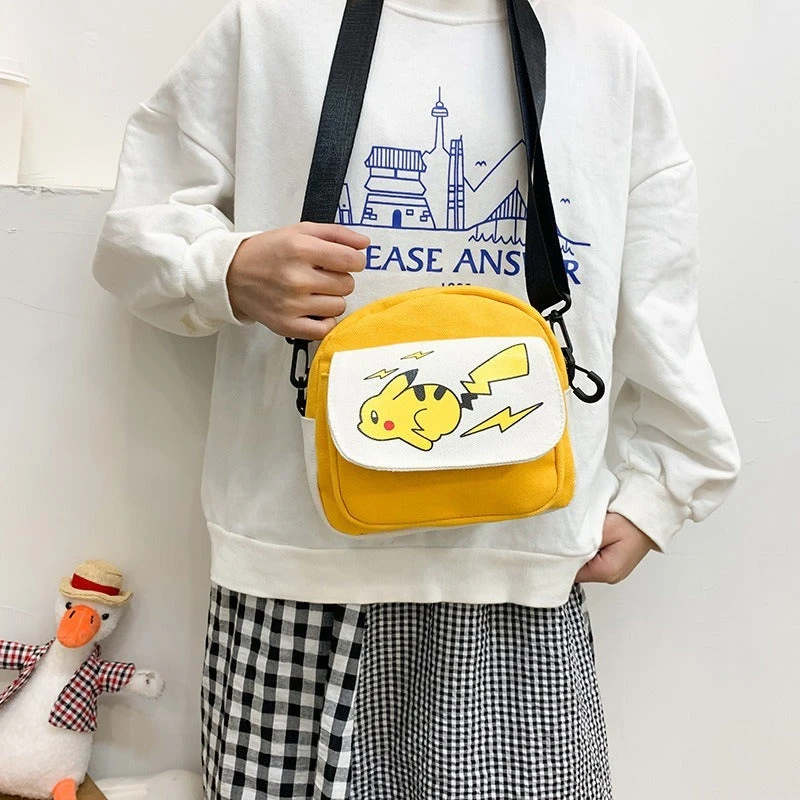 Diese Umhängetasche ist gerade für Fans der Pokémon Serie was Besonderes. Denn diese besitzt vorne das Design des beliebten Elektro-Pokémons Pikachu. Pikachu ist das erste Pokémon von Ash und bei seinen Abenteuern immer mit dabei. Es ist die Vorstufe von Raichu. Sein Markenzeichen ist das liebliche Aussehen und das Aussprechen von Pika-Pikachu. Die Umhängetasche gibt es in vier unterschiedlichen Farben, wobei Pikachu stets in der Farbe Gelb dargestellt wird.