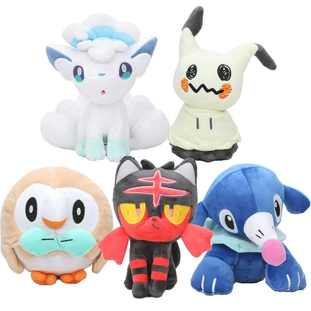 Detailreiche ca. 18-20cm große Plüsch Pokmemon. Es stehen 5 verschiedene Pokemon zur Wahl: Litten, Rowlet, Popplio, Alola, Vulpix, Mimikyu