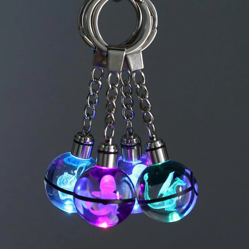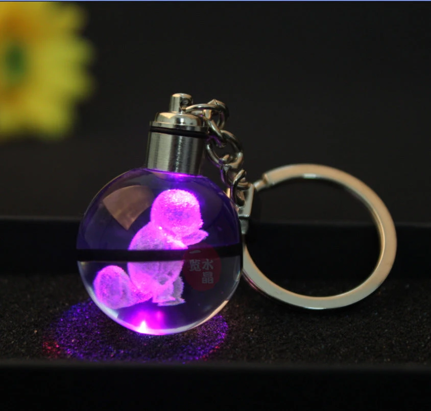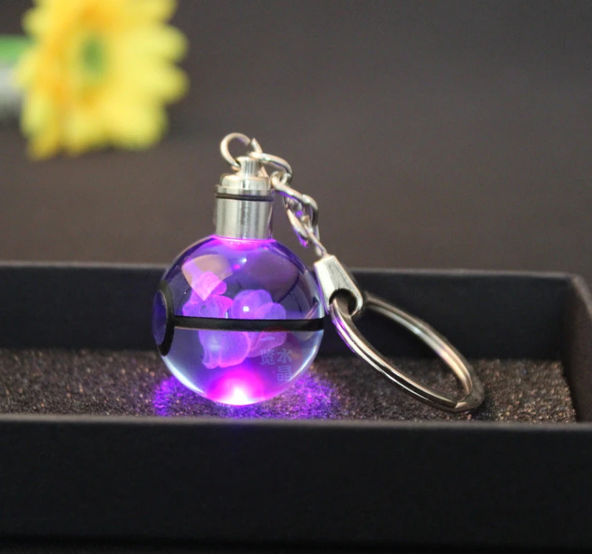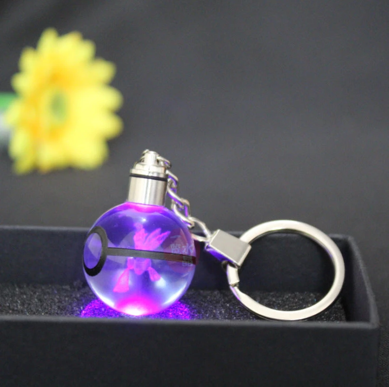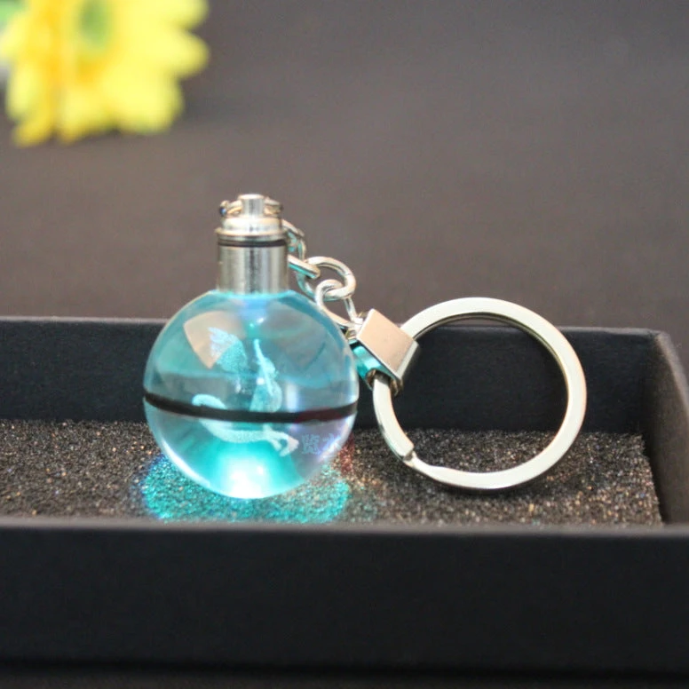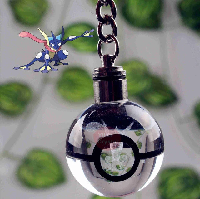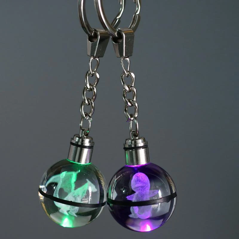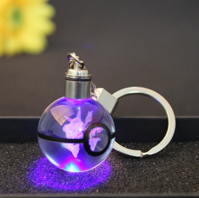 Dieser Schlüsselanhänger ist genau das Richtige für Fans der beliebten japanischen Animeserie Pokémon. Dieser besitzt einen Pokéball Optik, in deren Mitte sich die Abbildung eines Pokémons befindet bzw. eingraviert ist. Auf dem Ball ist die Kette zur Befestigung des Schlüsselanhängers, sowie ein Drehknopf. Mittels dessen beginnt der Anhänger zu leuchten und wechselt dabei die Farbe. Durch die Gravur wird mit der Beleuchtung ein schöner Lichteffekt sichtbar und das darin befindliche Pokémon erstrahlt in 3D.