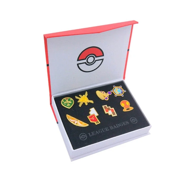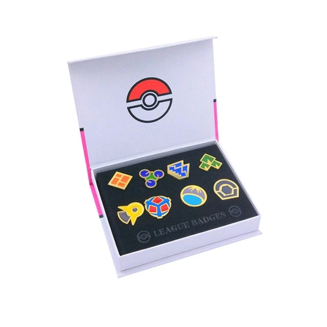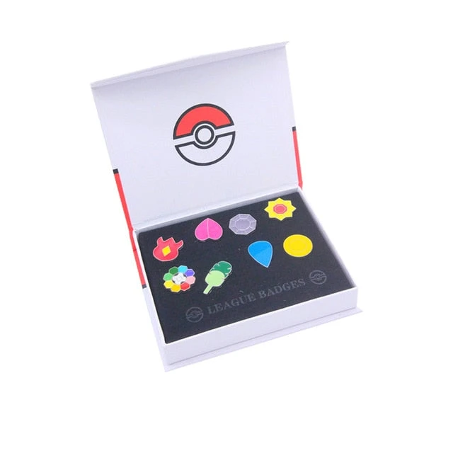 Pokemon Badges (Kanto, Johto, Hoenn, Sinnoh, Unova, Kalos stehen zur Auswahl) in einer schicken Box. Die ca. 2.3cm bis 4cm großen Badges sind detailreich gefertigt und bereichern jeden Pokemon Fan.