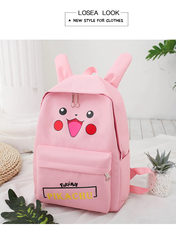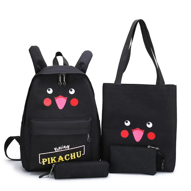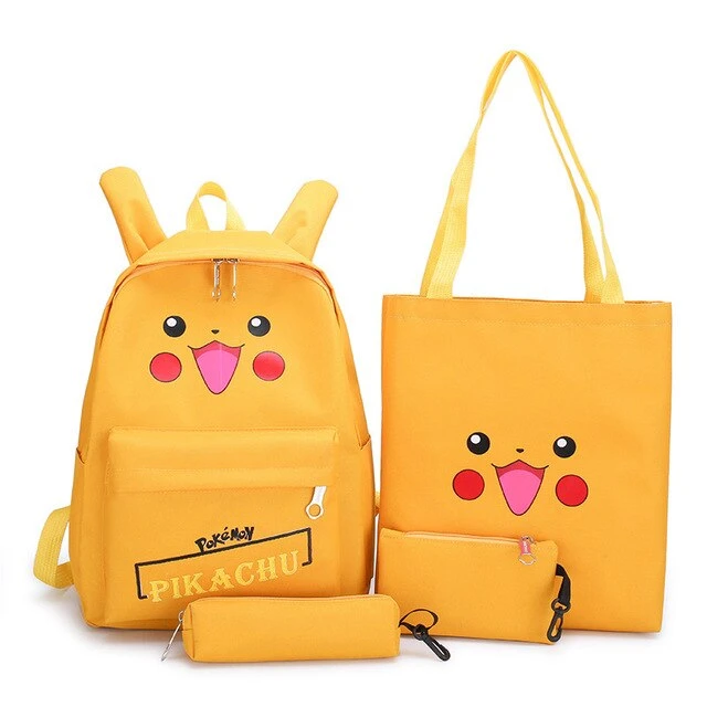 Stylishes Rucksack Set im Pikachu Look. Verfügbar in Pink, Schwarz oder Gelb. Enthalten ist 1x Rucksack, 1x Tasche, 1x Federmappe und 1x kleine Tasche.