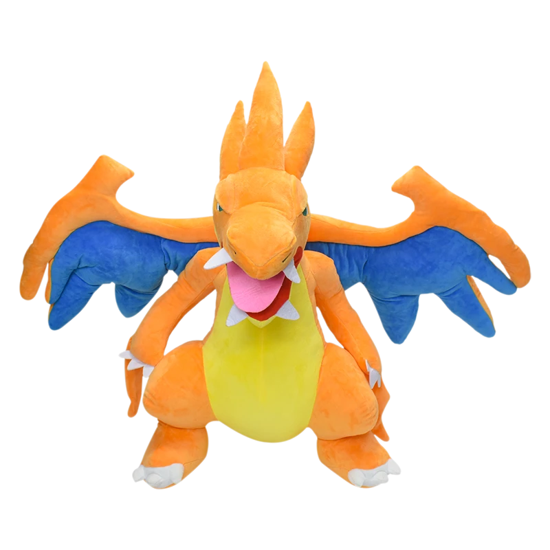 Das Pokémon XXL Glurak stellt in der Pokémon Welt einen riesigen Drachen dar. Und genau so riesig ist auch unser XXL Glurak Plüschtier. Mit den Maßen 82cm x 80cm x 60cm bekommen Pokémonfans und Kinder ein riesiges XXL Plüschtier zum kuscheln. Das Pokémon kann dabei in der Farbkombination orange, gelb und hellblau, grau ausgewählt werden. Die Gestaltung ist sehr detailliert und sieht exakt wie die Figur aus der Serie aus.